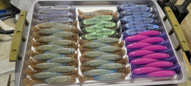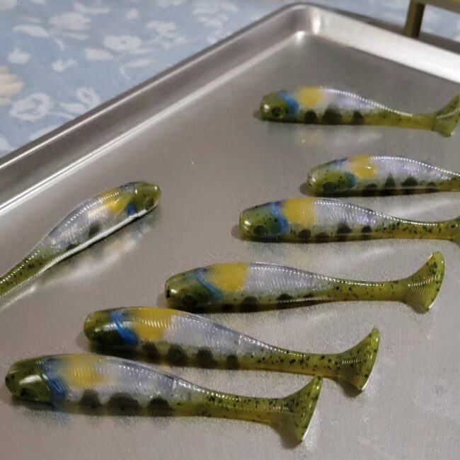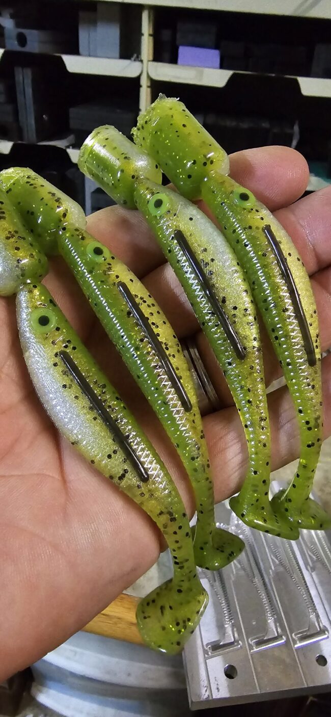 I broke out the Triple injector for this one. Bloodline and sticks are looking good. Okay we definitely have the color dialed in. Some baby bass bloodline swimbaits. Let me know if you are interested.